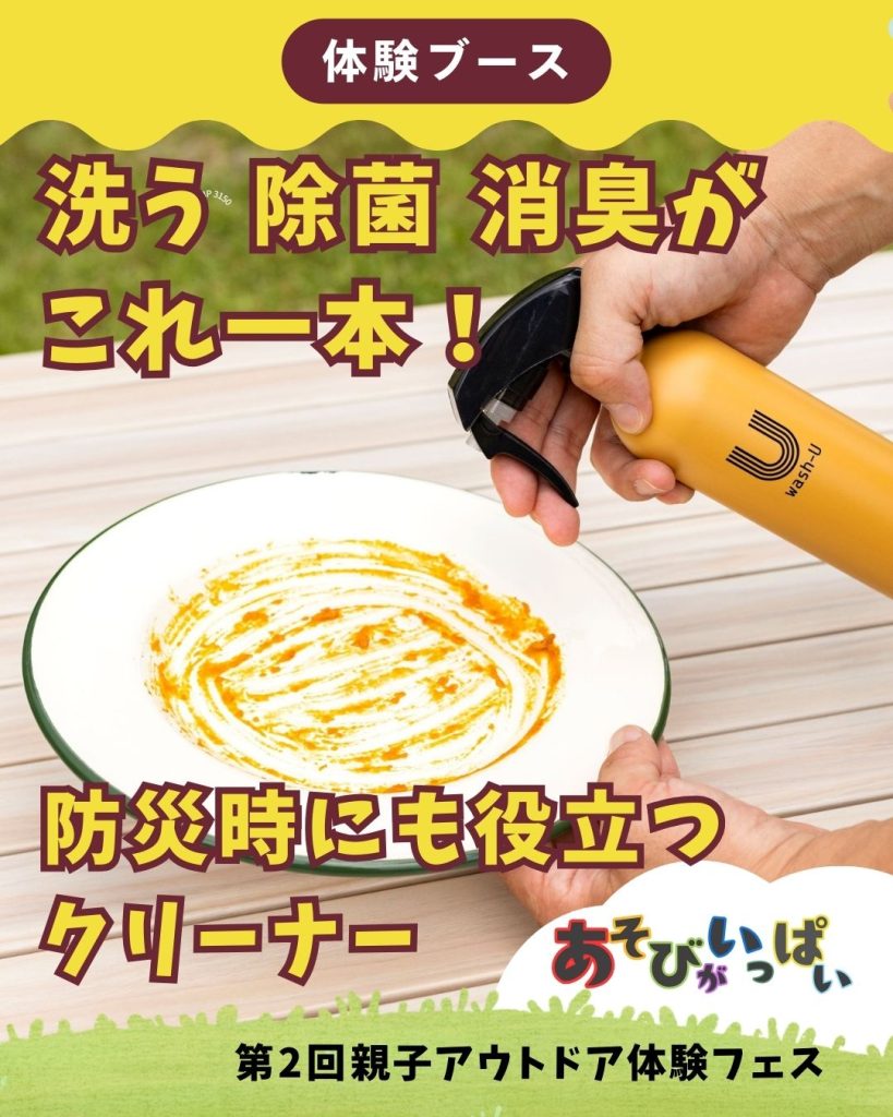 日本初の3機能同時対応マルチクリーナー「wash-U」を使ってマイカップやマイカトラリーをきれいにしてみませんか? 日常はもちろん、防災グッズとしても注目の製品、 体験者にはちょっと嬉しいプレゼントも!