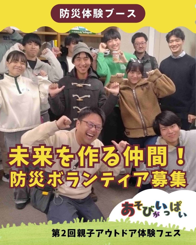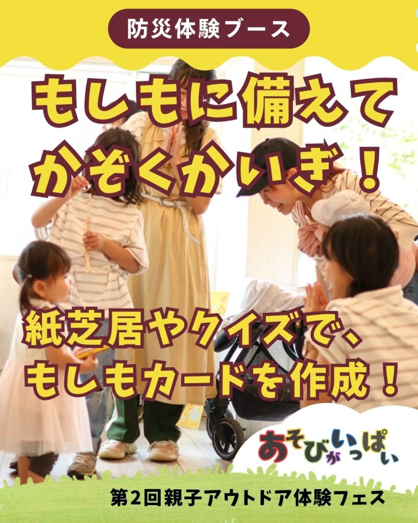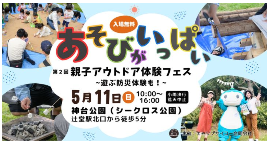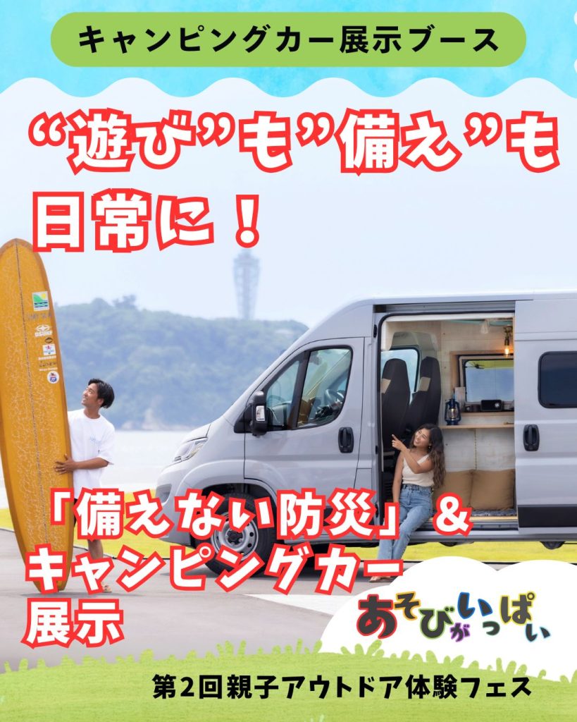 「親⼦アウトドア体験フェス〜遊ぶ防災体験も!〜」は、「アウトドア体験を通じて親子の絆を深める」ことをテーマに、キャンプ初心者の親子でも気軽に楽しめるワークショップ・体験型プログラム・キャンピングカーなどの展示を多数用意。さらに、 「アウトドアスキルが、いざという時の防災にも活かせる」ことを楽しく学べるコンテンツも用意し、アウトドアと防災を両立するイベントとなっています。