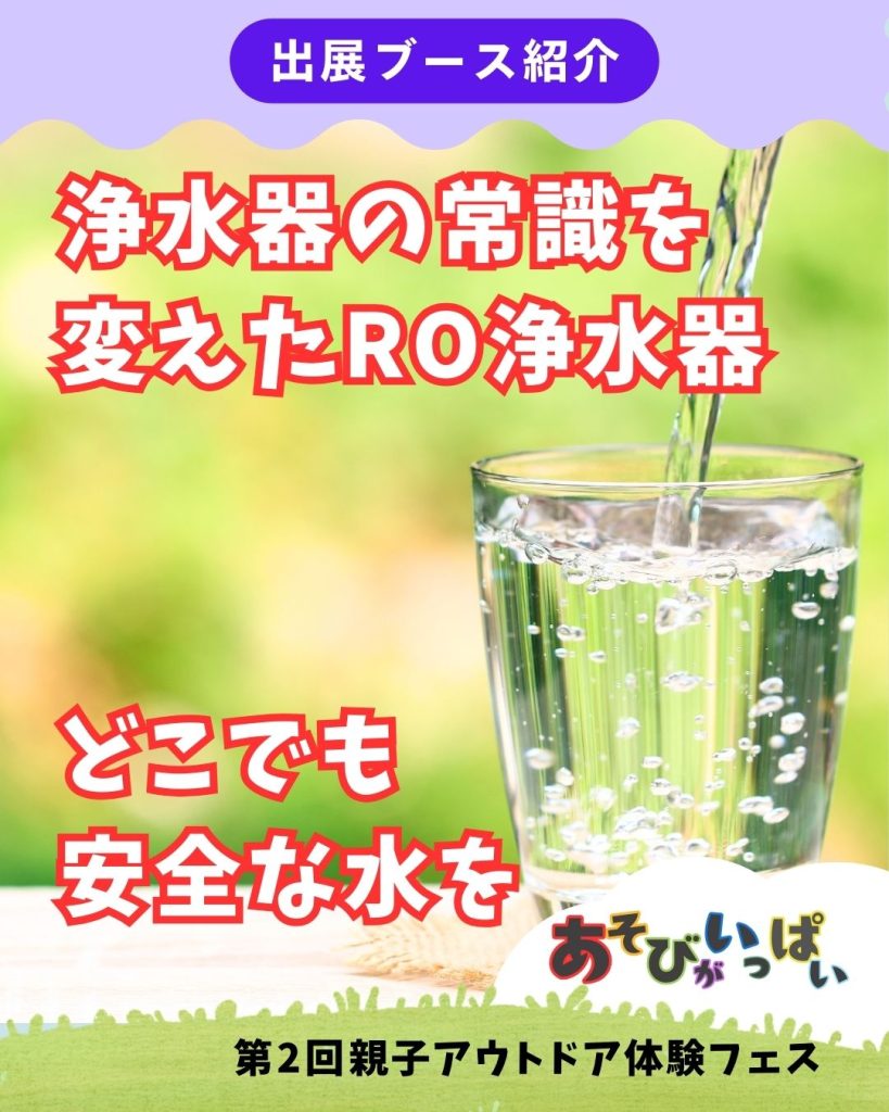 次世代型RO逆浸透膜浄水器は、 家庭用はもちろん、アウトドアシーンや災害時にも活躍する心強いアイテム。さまざまなシーンで活用可能な浄水器を会場で実物展示&簡易体験。 ぜひブースで直接ご体感ください!