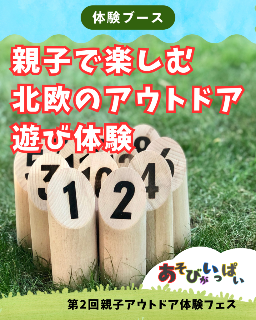 シンプルな木製のアウトドア遊び体験「モルック」と「ジャビット」。大人も子どもも楽しめるアウトドアゲームで、木のピンを狙ったり、輪っかを通したりします。初心者でも簡単に遊べ、親子で盛り上がる体を動かす遊びが楽しめます。