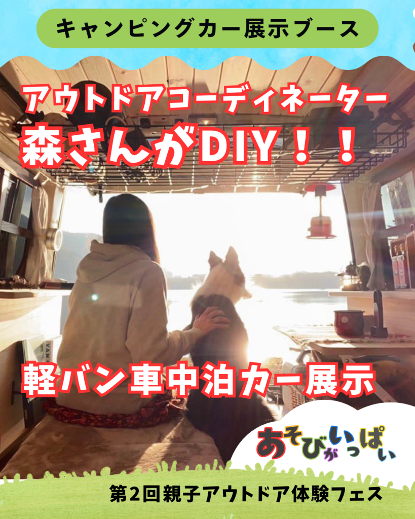 イベント当日は、ステージでのプログラムに加え、森風美さんがDIYした軽バン車中泊カー「なまけもの号」の展示も行います。