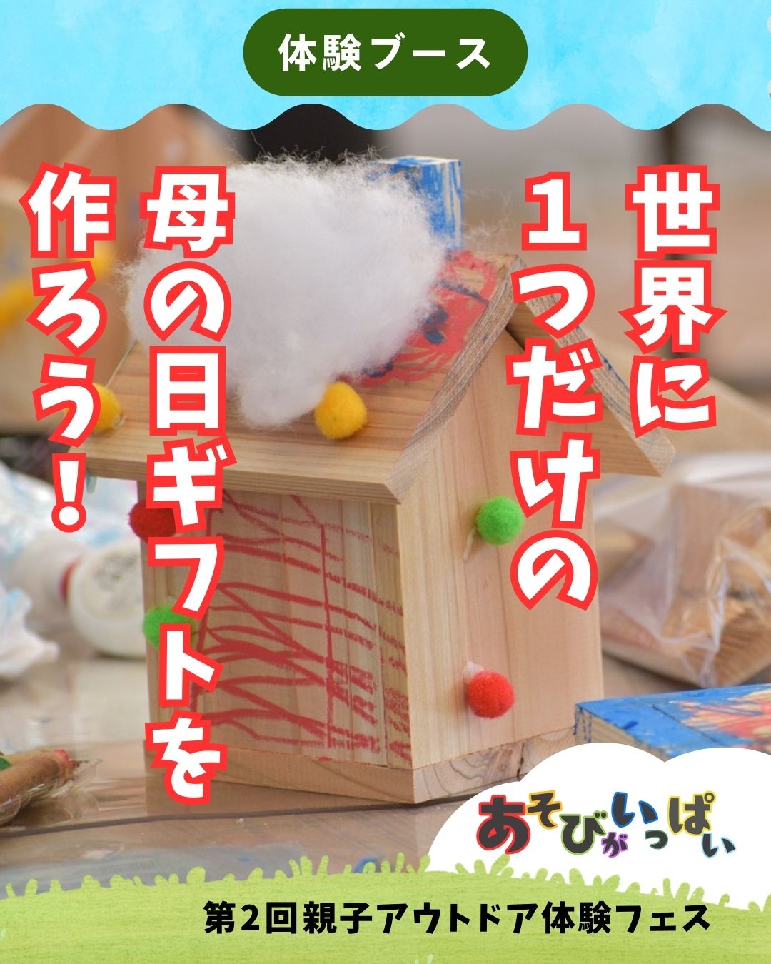 5月11日(日)は母の日です。大切なお母さんや奥様のために、お家の形をした一輪挿しのフラワーベースを手作りしてみませんか? 自由に色を塗ったりテープを使って飾り付けて、特別な贈り物に手紙を入れられます。ぜひ、特別なフラワーベースを作りましょう🎶
